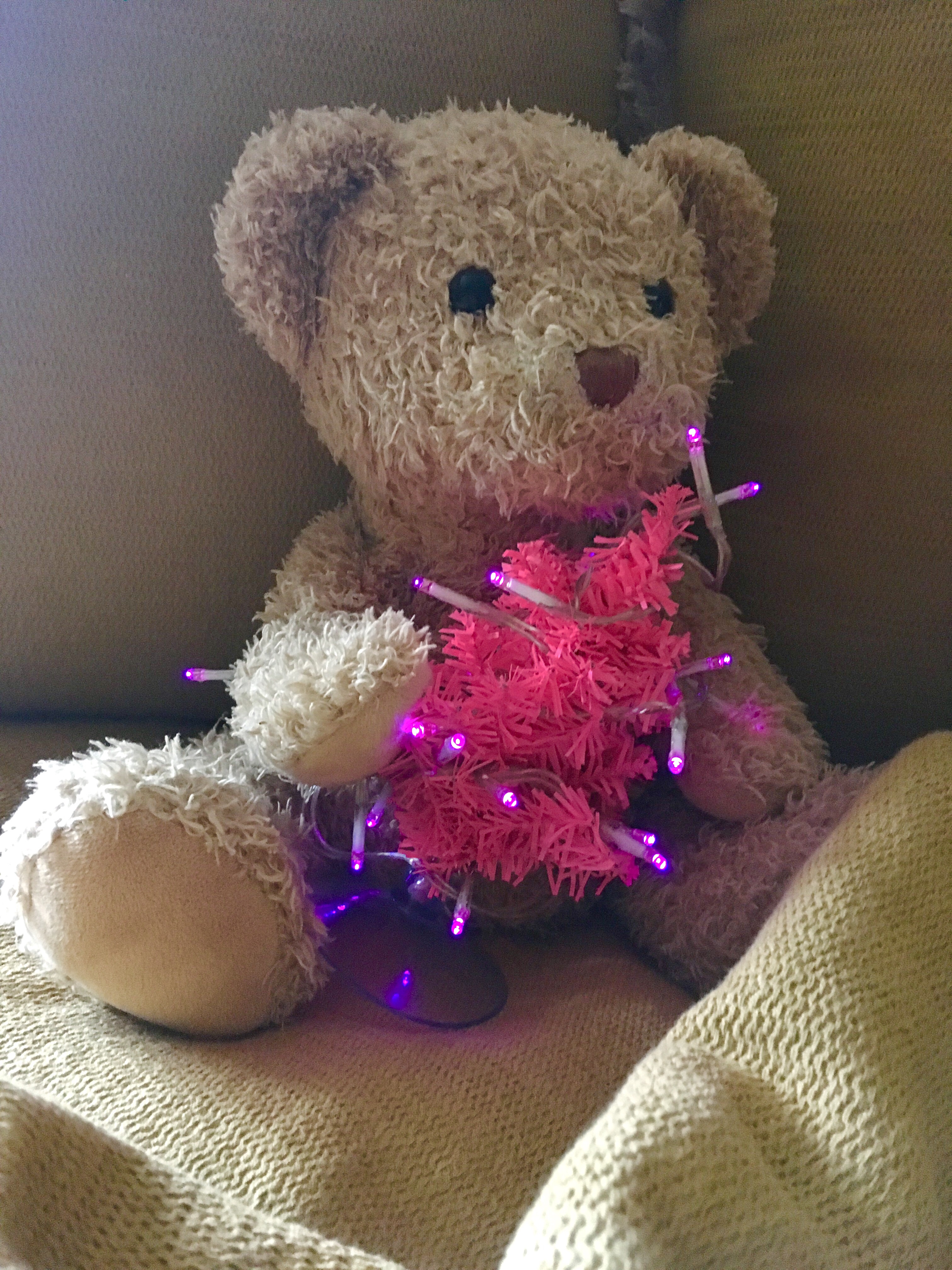 The polar paused thoughtfully. ‘And how did you pay for those things?’ Abigail shrugged. Patrick sighed. ‘Oh dear,’ he looked at her hard, ‘well I suppose you didn’t know you had to. We can just take them back to the shop.’ There was a thud as Abigail dropped her sandwich onto the floor. She had just taken a bite but her mouth suddenly went dry and she swallowed hard. Her nose began to tremble and her ears drooped. Go back to the shop? Give the things back? But they were hers, they’d kept her company in her hidey hole behind the jigsaw. She loved her pink tree, and her bag, and the marbles. And her blue cover. A tear leaked out from the corner of her eye down into her fur. ‘Oh dear,’ said Patrick again hastily, scurrying across the table towards her, ‘don’t cry, it’s all right. I can just pay for them, it will be all right.’