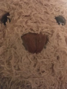 The train began to slow and climbing up onto the back of the seat she pressed her nose against the window. The green fields had disappeared and she could see brown walls and houses. The train slowed again. Was it stopping? The seat shook beneath her paws and there was a jolt. “Whoaa..” Abigail lost her balance and slid down the red cushion. With a thud she landed on the floor. The train stopped. It went very quiet. Clambering up onto her paws and dusting herself down, Abigail reminded herself again that she was a very brave bear. There was a hissing noise and a whoosh of cold air blew through her fur. The doors were open! Cautiously she edged around the seat. Nobody seemed to be around. Tiptoeing towards the doors she leant out. The train had stopped against a long grey pavement. In the distance she could see a few people, but they all seemed to be walking away. Taking a deep breath Abigail jumped down.