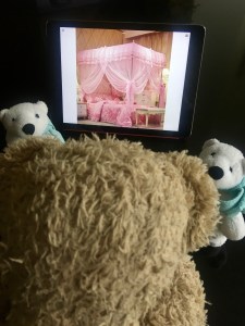 ‘Nothing,’ said Abigail, ‘they were very flat sardines.’ Climbing back up she sat down by the screen. Finally! And it was full of pictures of beds! They were very small though and leaning forward Abigail wrinkled her nose. They were tiny, how could she choose. Running her paw down the screen she paused and her eyes widened. She made the picture a bit bigger. Patrick choked on his sandwich and started to cough. They all stared in silence at the bed. Pink with pink net curtains and bits of gold, and cushions, lots of cushions. Abigail had never seen anything like it. ‘Is.. is that a bed?’
