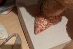 Buttons were quite tricky to manage with paws. Abigail stood up and looked in the mirror. She’d picked a cream lace blouse with tiny pearl buttons. It had looked very pretty on the hanger. But no, it was far too long, and her paws didn’t fit all the way down the sleeves. She didn’t like it at all and now she couldn’t undo it. And where had her paws gone, she couldn’t see them at all. Twisting around and wriggling hard, she managed to pull the blouse up off over her head with a pop. There was a rattle and little pearl buttons rained down over the aisle. With a sniff she peered down at the pile of clothes next to her and shook out a black top with silver sequins. Now this looked better, it was very sparkly and would go with her fur.
