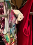 Abigail was very bored. Laying on her back she looked up at the rows of clothes above her. Raising her paws she waved them too and fro and the clothes swung from side to side. Catching her claws in a pink dress she shook her paw hard and there was a loud rattle from the clothes hanger.